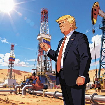 Picsart’s AI image generator was asked by Lawrence Pascua: “Create an anime image of president Donald Trump taking over the oil field extractions in Venezuela,” and it replied by producing this image.