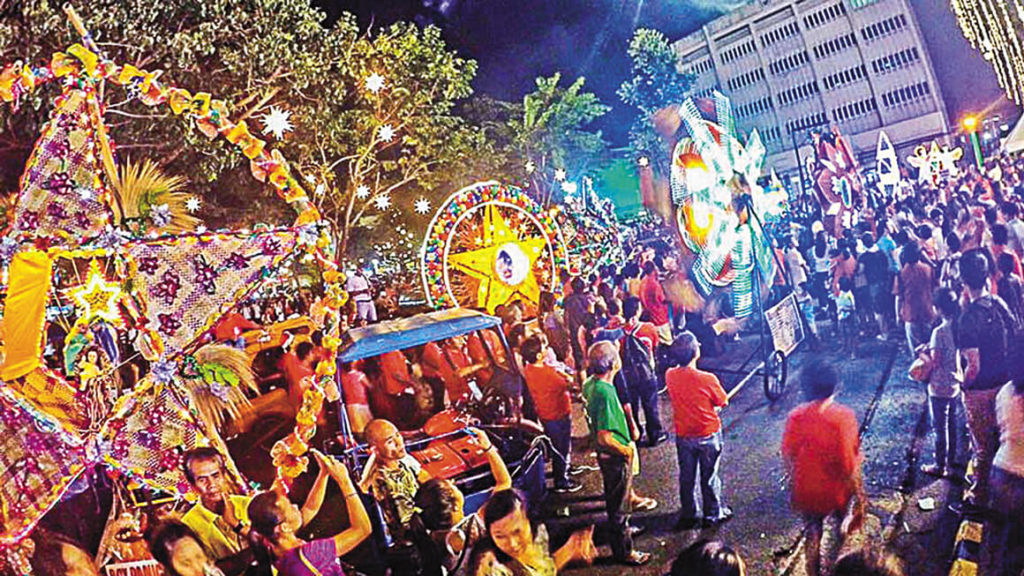 People gathered in the lighted streets during the “ber” months at this Naga Lantern Parade at the 2015 Naga City, Bicol, Philippines.