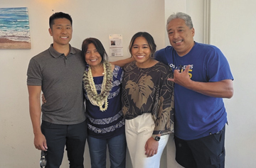Her husband, Terence Lendio, worked for ABC Stores on O‘ahu before moving to Maui in 1982 to help with the company’s expansion. He built a 36-year career of his own with the company and was able to retire early as a Store Manager. Janet and Terence have been married for 31 years and raised their family in Lahaina. Their son, Rhys, graduated from Linfield College and now works as a financial planner. He and his wife, Cristina, live in Hillsboro, Oregon. Their daughter, Rhyn, graduated from Pacific University—her father’s alma mater—and works as a dental hygienist in Portland, Oregon.